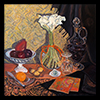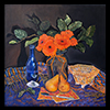 Painting unfolds in slow time. It is a meditative process wherein hand and eye and mind converge with the medium of oil paint, the mark of the brush, the sensual rendering of form, colour and texture, the delight in capturing the extraordinary world imbued in reflective objects, luminous surfaces, cast shadows and deep recesses, sumptuous tactile fabrics, delicious ripening fruit and seasonal blooms.
